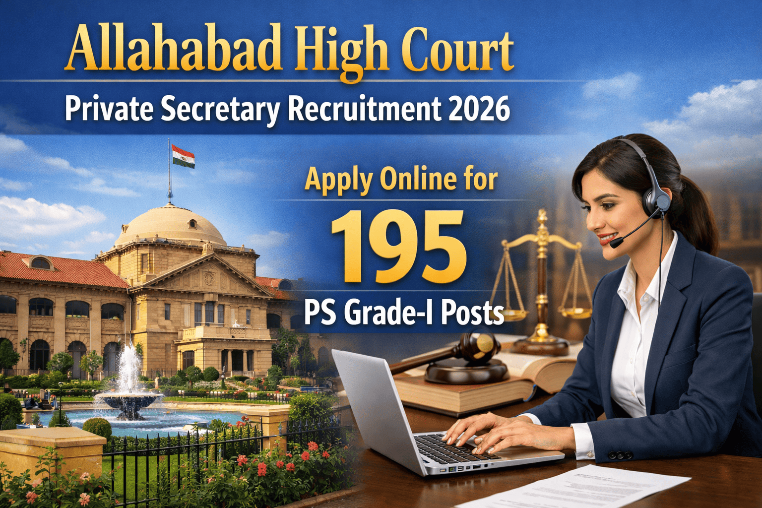 This recruitment drive aims to fill 195 vacancies for the post of Private Secretary Grade-I within the establishment of the Hon'ble High Court of Judicature at Allahabad. The selection process involves a three-stage examination, including a Computer Based Test (CBT), Shorthand Dictation, and an Interview.
