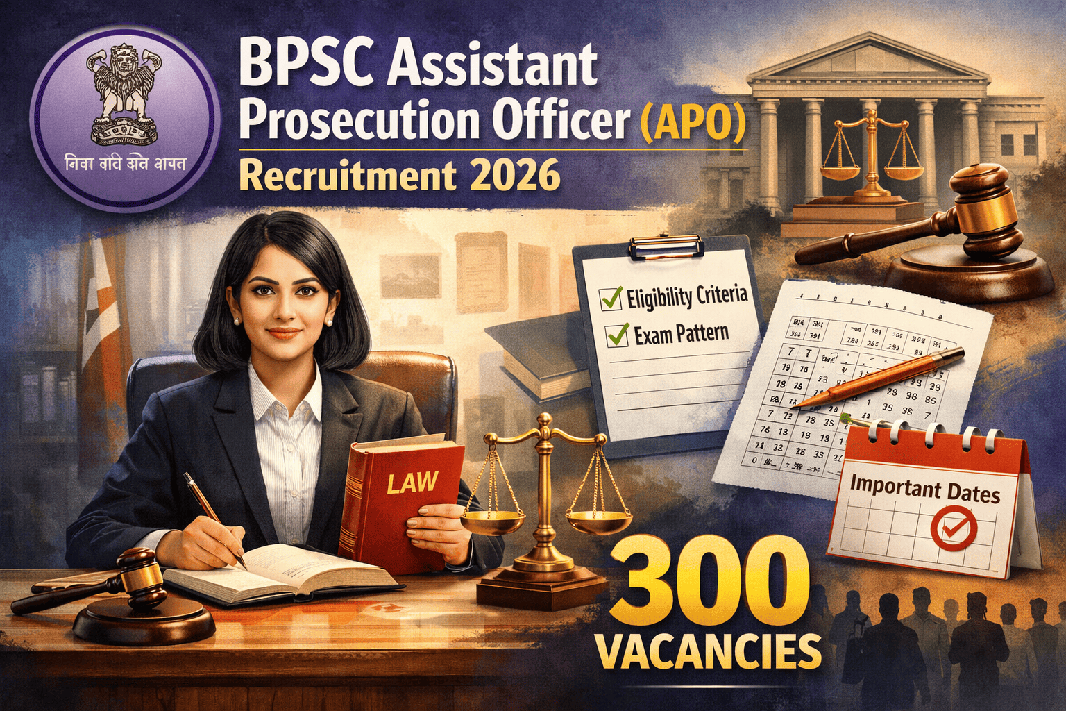 The Bihar Public Service Commission (BPSC) has released Advertisement No. 13/2026 for the recruitment of Assistant Prosecution Officers (APO) under the Home Department (Prosecution Directorate), Government of Bihar. This recruitment drive aims to fill 300 vacancies through a competitive examination process consisting of Preliminary, Main, and Interview stages.