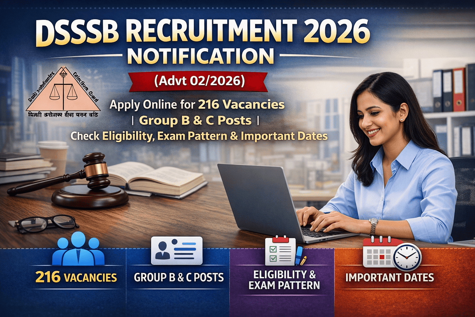 The Delhi Subordinate Services Selection Board (DSSSB) has invited online applications for recruitment to 216 vacancies under various departments and autonomous bodies of the Government of NCT of Delhi. The vacancies cover a wide range of roles including Assistant Managers, Patwari, Radiographer, Optometrist, and Stenographer Grade-I. This is a prime opportunity for candidates seeking government jobs in Delhi across Group B and Group C categories.