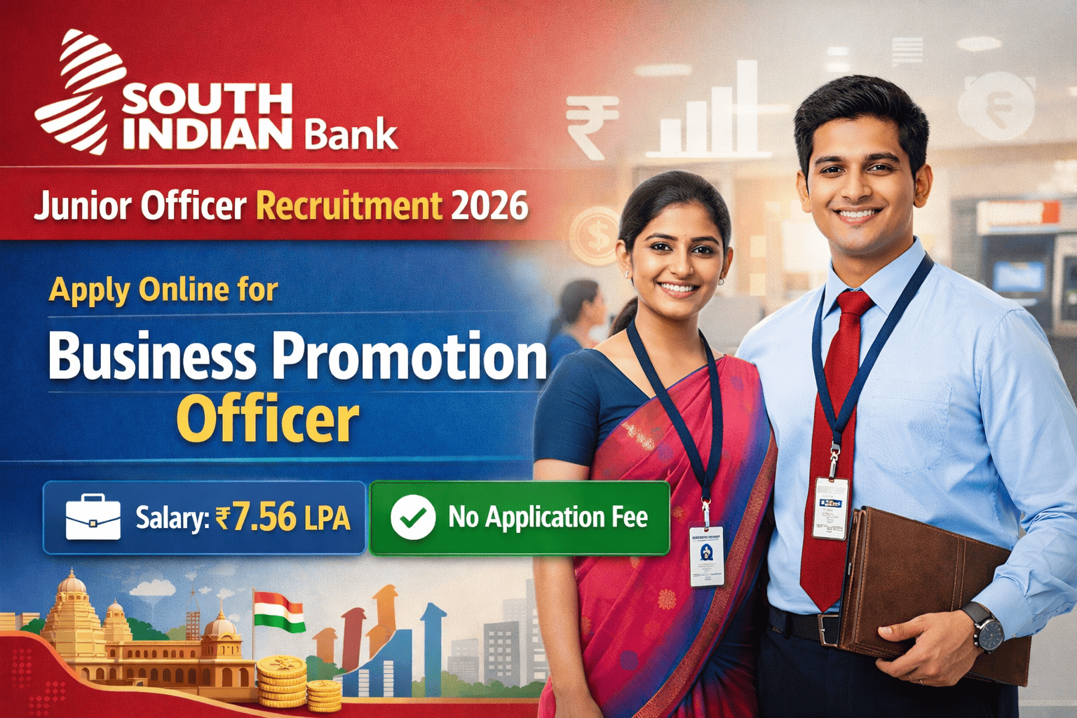 South Indian Bank has invited online applications from Indian nationals for the post of Junior Officer / Business Promotion Officer. This is a contract-based, target-oriented sales role with attractive CTC of ₹7.56 LPA. Candidates with graduation in any stream and minimum 2 years of banking/NBFC experience can apply online from 20 February 2026 to 02 March 2026. There is no application fee for this recruitment.