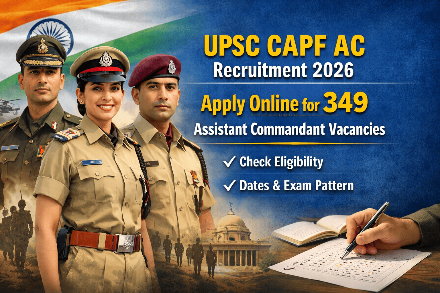The Union Public Service Commission (UPSC) has released the official notification for the Central Armed Police Forces (Assistant Commandants) Examination, 2026. This recruitment drive aims to fill 349 Group ‘A’ Executive positions in BSF, CRPF, CISF, ITBP, and SSB. Both male and female candidates are eligible to apply for these prestigious officer-grade positions.